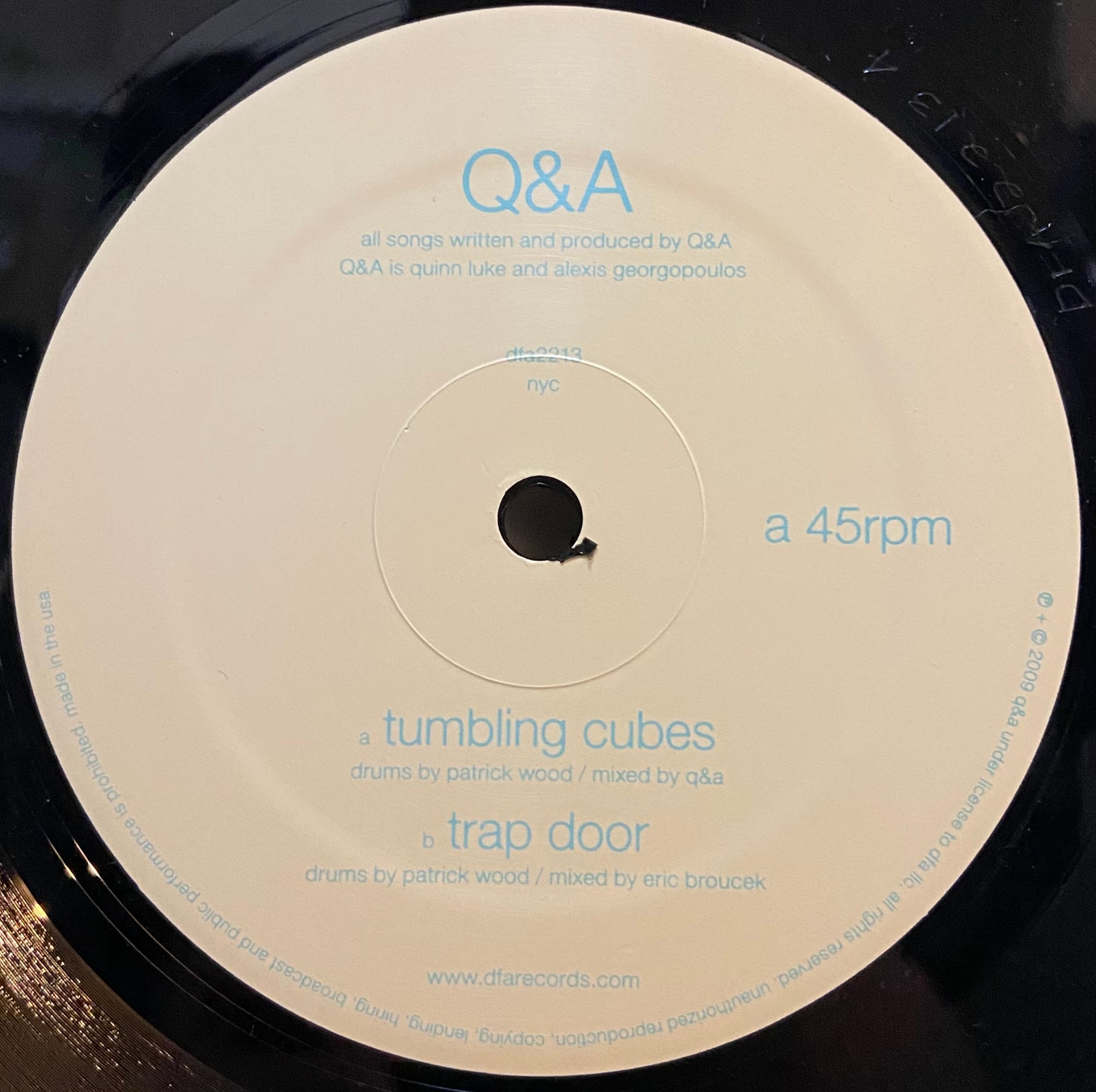 James Murphy 率いる〈DFA〉からリリースされた、Alexis Georgopoulos(ARP) と Quinn Luke(Bing Ji Ling) によるユニット Q&A のデビュー12インチ。